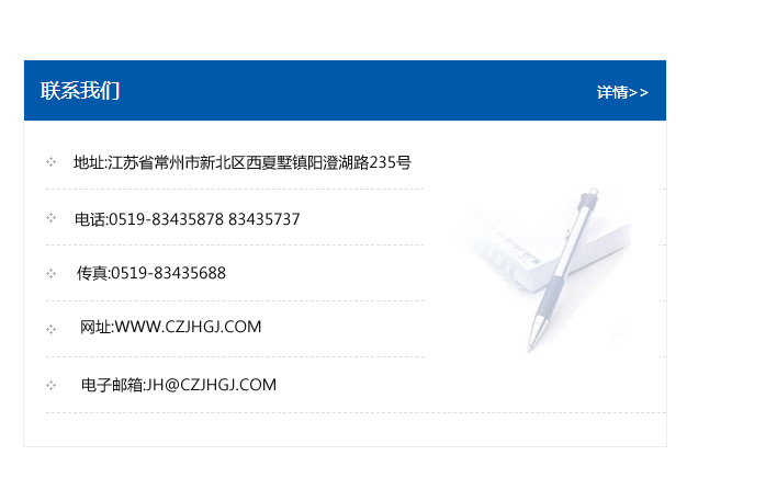 地址:常州市新北區友邦商務大廈1幢16、17層  電話:0519-85101652  傳真:0519-85112595  郵編:213022  網址:www_cz-jiayue_cn.cqhaoli.com  郵箱:xiajifengaa@163.com